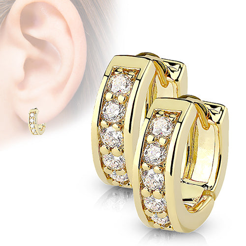 Half Circle CZ Hinged Hoop Earrings Earrings 20 gauge Gold Plated