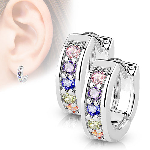 Half Circle CZ Hinged Hoop Earrings Earrings 20 gauge Rainbow