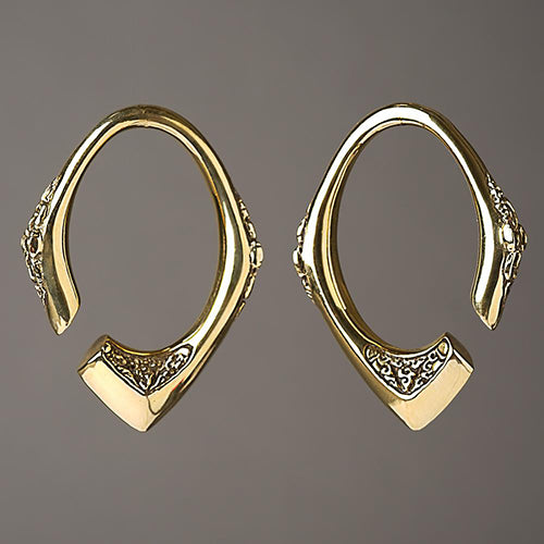 These indra weights are cast from solid brass by Diablo Organics. They fit stretched ear lobes sized 00 gauge or larger. Available only in yellow brass.