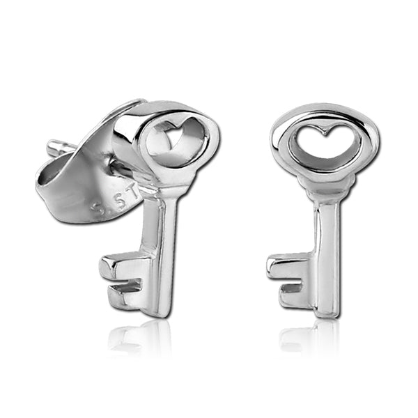 These 20 gauge skeleton key heart stud earrings are made from cast 316L stainless steel.