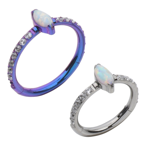 Marquise Side Opal Titanium Hinged Ring Hinged Rings 16g - 5/16" diameter (8mm) Capri Blue Opal / Clear CZ