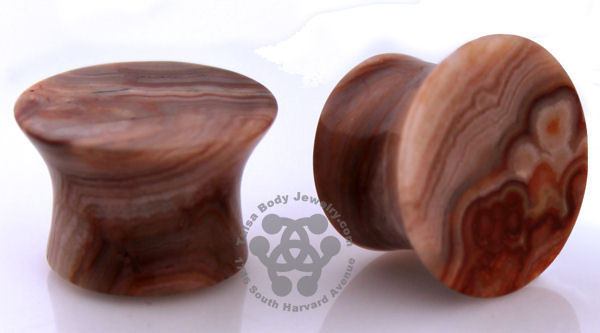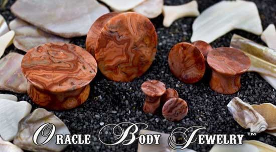 Crazy Lace Agate Mayan Plugs by Oracle Body Jewelry Stretched Lobes