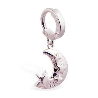 Moon & Stars Dangle by TummyToys Belly Clickers 14g - 3/8" wearable length Sterling Silver