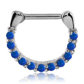 Opal Stainless Septum Clicker Septum Clickers 16g - 1/4" diameter (6mm) Capri Blue Opal