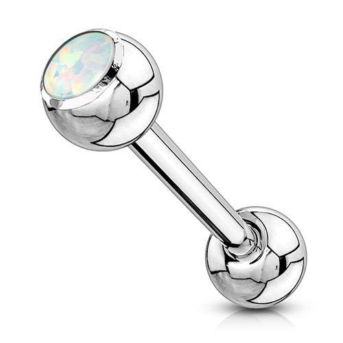Opal Stainless Tongue Barbell Tongue Barbells 14g - 5/8" long (16mm) White Opal