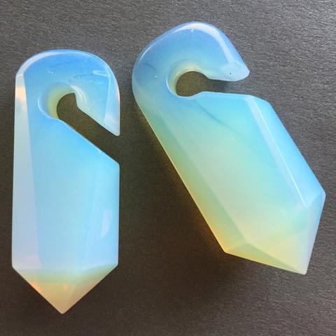 These prism earweights are made from opalite glass by Diablo Organics. These can be worn by anyone with 9/16" lobes or larger.