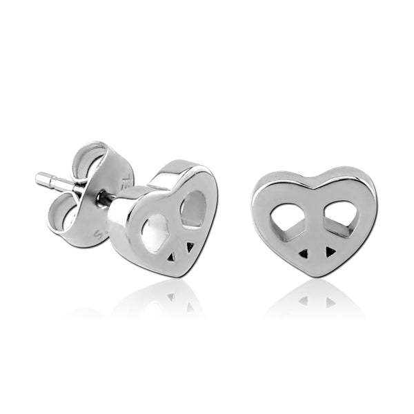 These 20 gauge peace and love stud earrings are made from cast 316L stainless steel.