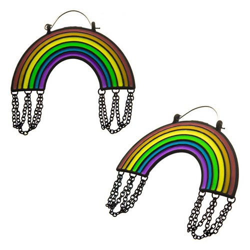 These 20 gauge rainbow chain tunnel hoop earrings are made with hand painted enamel. The hinged post is made from 316L surgical steel. They can be worn as regular earrings, but the oversize design is intended to fit comfortably inside most flesh tunnels. Sold as a pair.