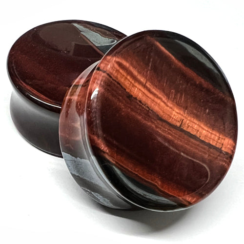 Red Tiger Eye Concave Plugs Stretched Lobes