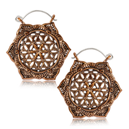 Rose Brass Flower Of Life Earrings