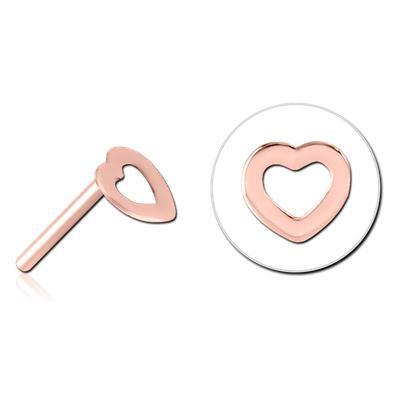 The threadless heart outline end is made from rose gold PVD coated 316L stainless steel. It has a 25g pin that is compatible with most threadless jewelry brands.