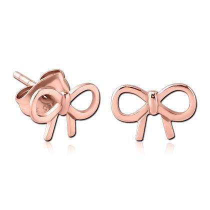 These 20 gauge bow stud earrings are made from rose gold plated cast 316L stainless steel.