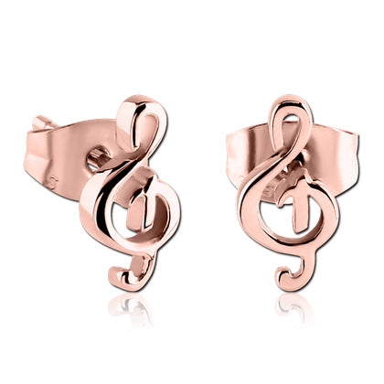 These 20 gauge treble clef stud earrings are made from rose gold plated 316L stainless steel.