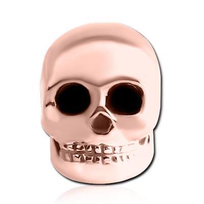 The skull replacement bead is made from rose gold PVD coated 316L stainless steel. It measures about 8mm high x 6.3mm wide overall, but is made to replace a 6mm bead. These will fit any 16g or 14g captive ring with a 6mm bead gap.
