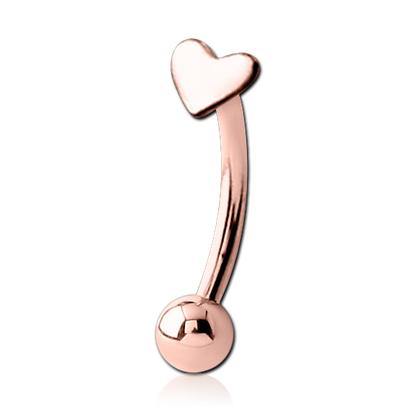 Tiny Heart Rose Gold Eyebrow Barbell Eyebrow Jewelry 16g - 5/16" long (8mm) Rose Gold Stainless