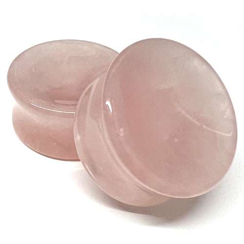 Rose Quartz Concave Plugs Stretched Lobes 0 gauge (8mm) Rose Quartz