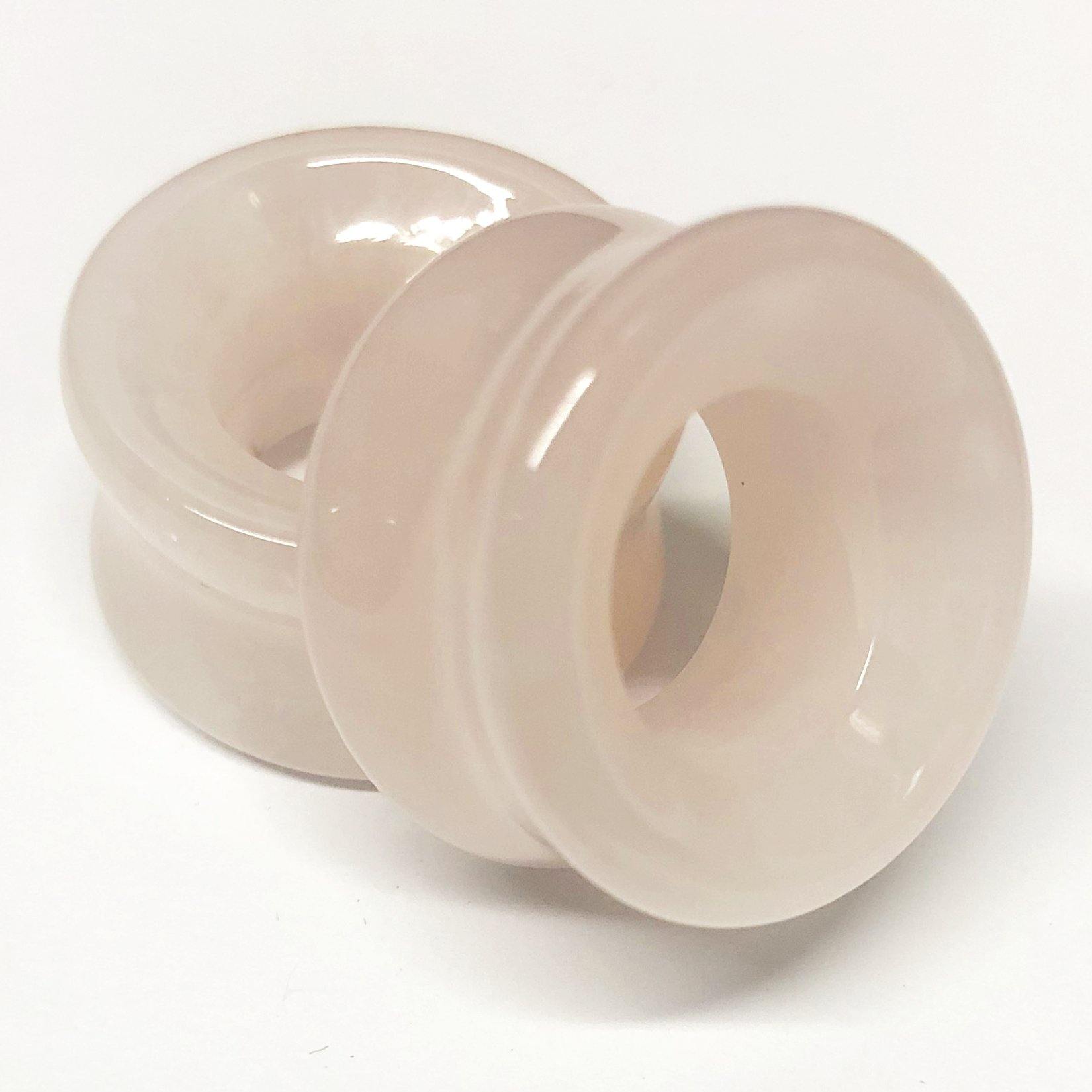 These double flare rose quartz tunnels have a wearable area of 3/8" between the flares. Choose your size below.