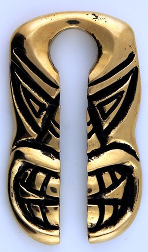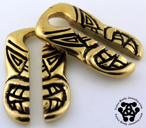 These rounded tiki weights are cast from solid yellow brass by Oracle Body Jewelry. They fit stretched ear lobes sized 7/16-inch or larger.