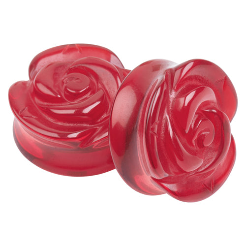 These double flare ruby rose plugs are made from cut glass with a wearable area of 3/8" between flares. Choose your size below.