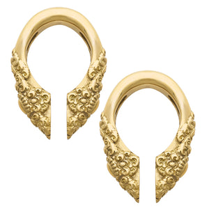 These sapon ear weights are cast from solid brass by Diablo Organics. They'll fit stretched ear lobes sized 7/16-inch or larger. These are available in white brass only.