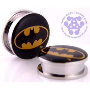 These screw-on batman plugs are made from 316L stainless steel with external threading. They have a wearable area of 1/4" between flares. The back side unscrews for easy insertion. Choose your size below.