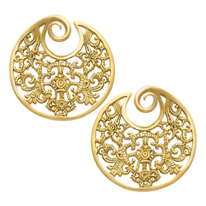 These eye of shiva ear weights are cast from solid brass by Diablo Organics. They'll fit stretched ear lobes sized 8 gauge or larger. Available in yellow brass only.