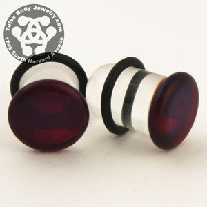 These single flare amber/purple color front plugs are made from hand blown borosilicate glass by glasswear studios. They have approximately 3/8" wearable area between the flare and o-ring. Two o-rings are included. Choose your size below.