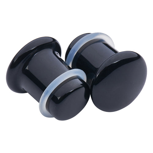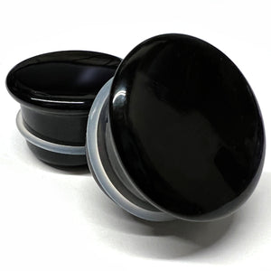 We're pleased to offer our black single flare glass plugs in eight new sizes up to an inch. These single flare convex plugs are made from opaque black glass. They have a wearable area of 3/8" and come with a pair of clear silicone o-rings. Choose your size below.