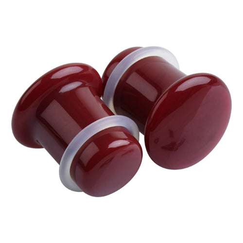 These single flare convex plugs are made from opaque rust glass. They have a wearable area of 3/8" and come with a pair of clear silicone o-rings. Choose your size below.