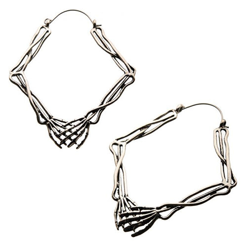 These 20 gauge skeleton hands hoop earrings have a bright silver finish. The hinged post is made from 316L surgical steel. They can be worn as regular earrings, but the oversize design is intended to fit comfortably inside most flesh tunnels. Sold as a pair.