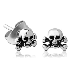These 20 gauge skull and crossbones stud earrings are made from cast 316L stainless steel.
