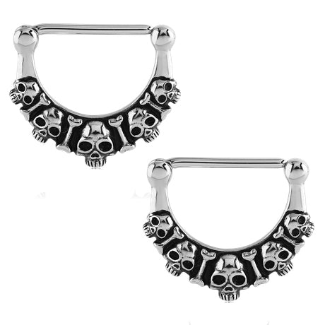 Skull Stainless Nipple Clickers Nipple Clickers 14g - 15/32" long (12mm) Stainless Steel
