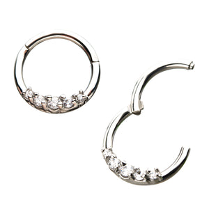 5 Clear CZ Stainless Hinged Segment Ring