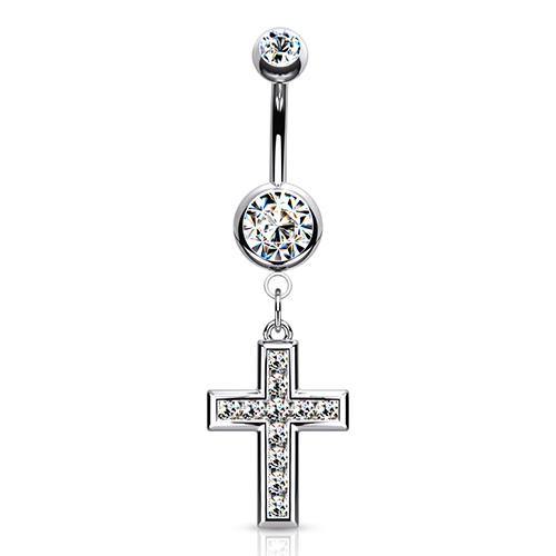 Cross CZ Belly Dangle Belly Dangles 14g - 3/8" long (10mm) Clear CZ