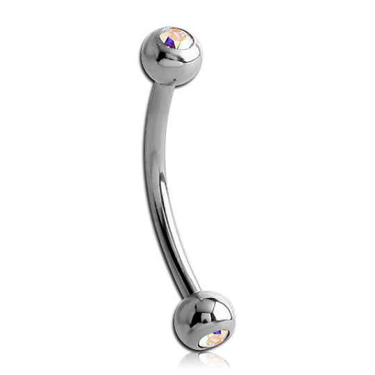 The 16 gauge cz curved barbell is made from 316L stainless steel with external threading. Choose your size and color below.