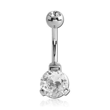 CZ Prong Stainless Belly Barbell Belly No-Dangles