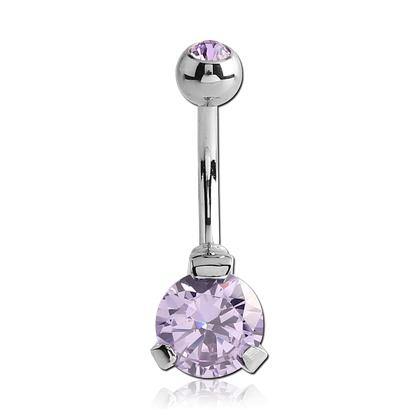CZ Prong Stainless Belly Barbell Belly No-Dangles 14g - 3/8" long (10mm) Lavender CZ