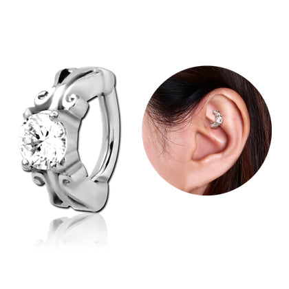 The 16 gauge jewelled cartilage clicker is made from 316L stainless steel with an interior diameter of 1/4". The curved barbell is 5/16" long, hinged on one side and snaps firmly shut on the other. The gem is available in clear only.