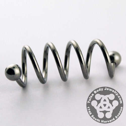 The 16 gauge quadruple spiral barbell is made from 316L stainless steel with external threading. Both ball ends are removable. Choose your size below.