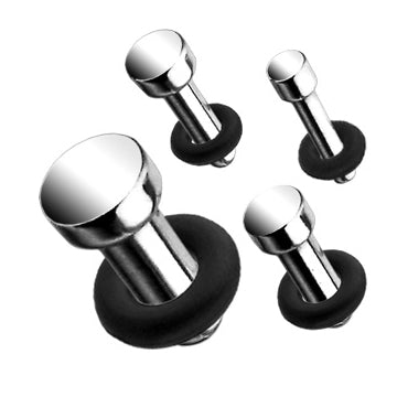 These single flare plugs are made from 316L stainless steel. They have a wearable area of 1/4" between the o-ring and flare. Two o-rings are included, but they may be either black or clear color. Choose your size below.
