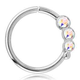 Triple CZ Stainless Continuous Ring Continuous Rings 16g - 3/8" diameter (10mm) Clear