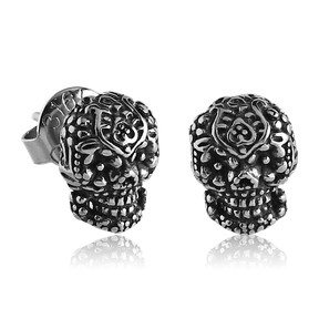 These 22 gauge sugar skull stud earrings are made from cast 316L stainless steel.