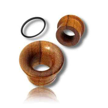 These single flare tunnels are made from teak wood. They have a wearable area of 5/16" between the o-ring and flare. They're grooved on the end to hold the o-rings more securely. Two black o-rings are included. Choose your size below.