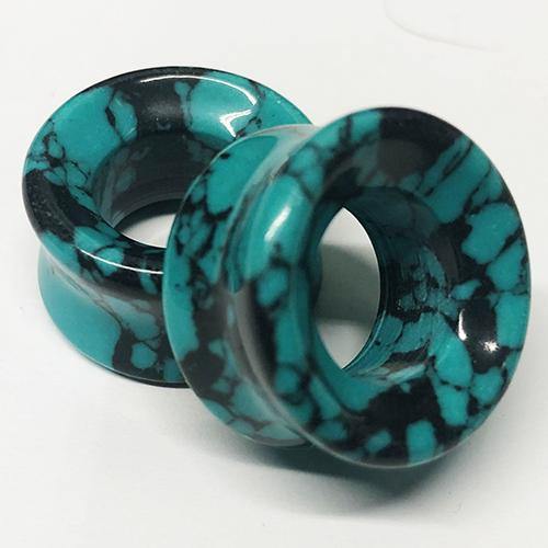 These double flare teal turquoise tunnels have a wearable area of 3/8" between the flares. Choose your size below.
