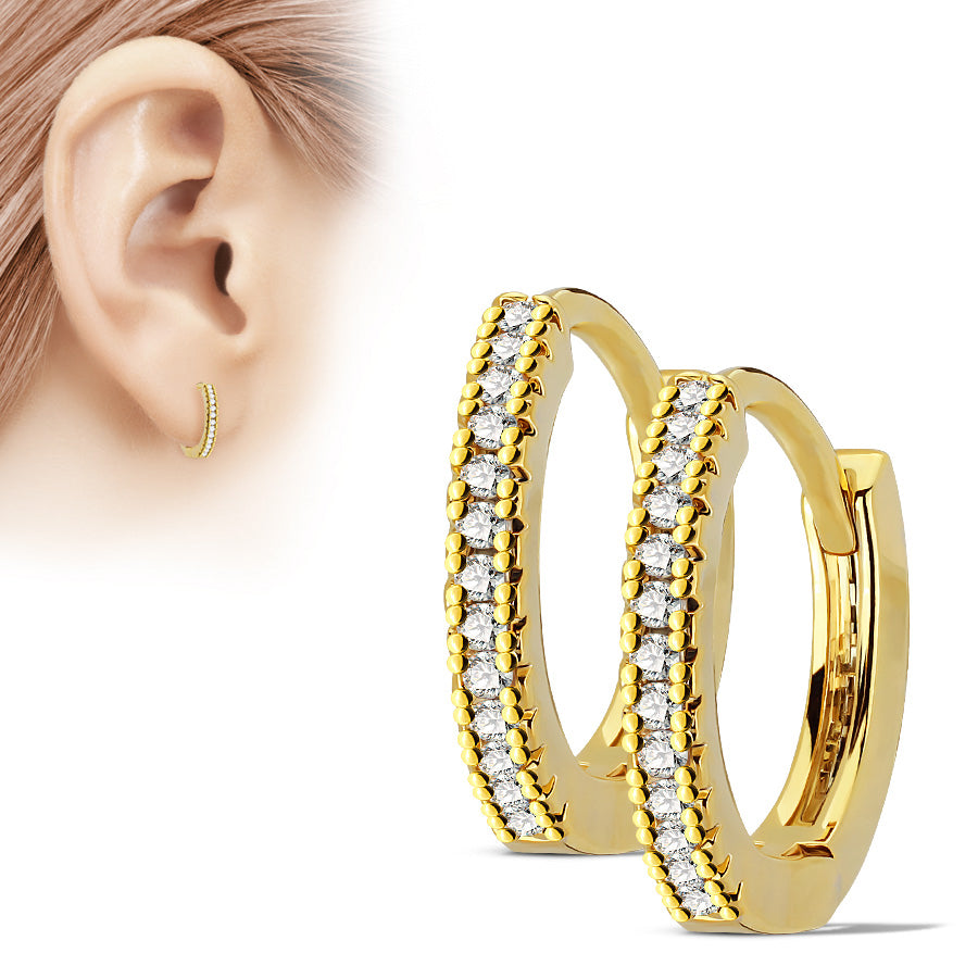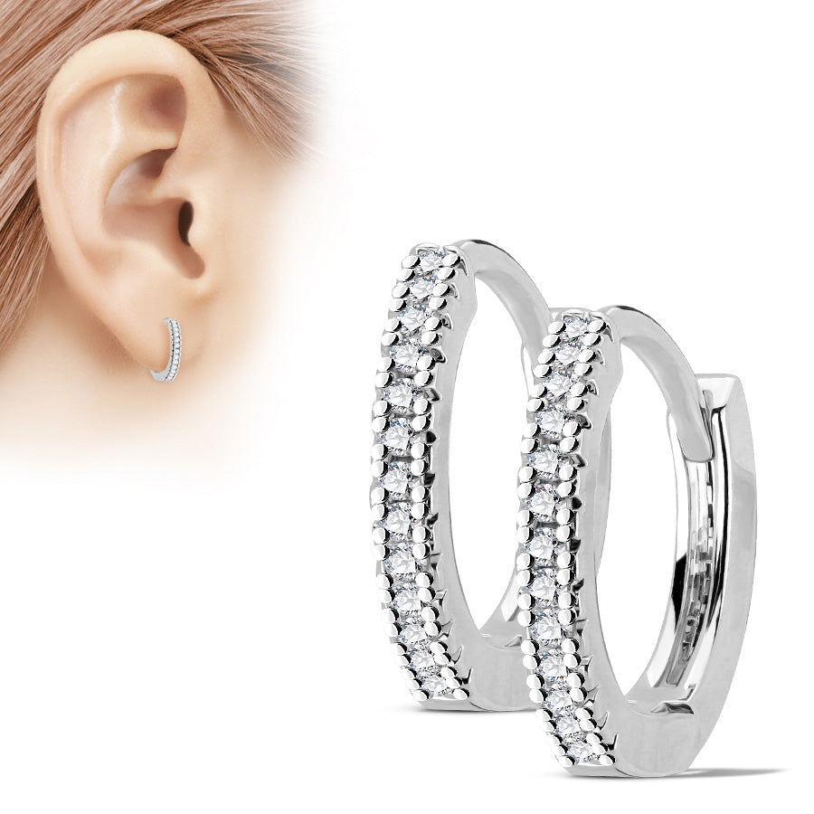 These 20 gauge thin cz paved hinged hoop earrings are made from 316L stainless steel. Choose your finish below.
