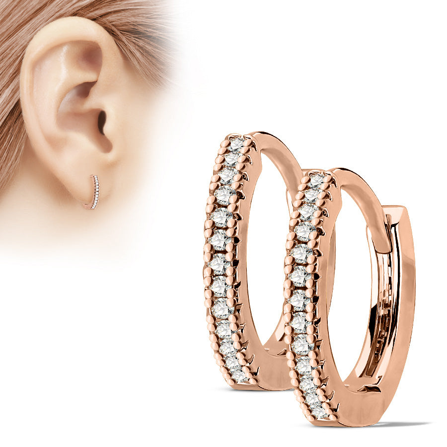 Thin CZ Paved Hinged Hoop Earrings Earrings 20 gauge Rose Gold Plated