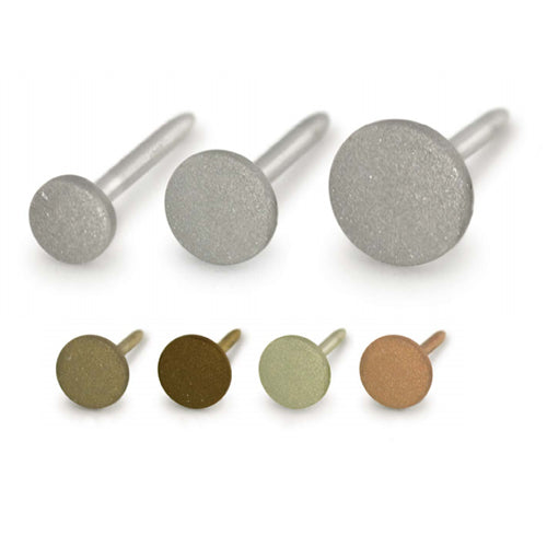 The threadless textured finish disc end is made from high polish implant grade titanium (ASTM F136 6AI-4V ELI) by NeoMetal Body Jewelry. It has a 25g pin that is compatible with most threadless jewelry brands. Choose your size and color below.