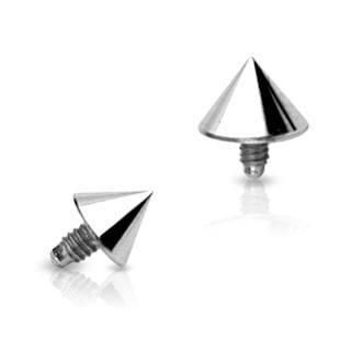 The 14 gauge cone is made from high polish grade 23 titanium (Ti 6Al-4V ELI ASTM F136). These will fit most any 14 gauge internally threaded straight barbell, labret or dermal anchor. We cannot guarantee compatibility with curved barbells. A cone measuring '4x8mm' has a base diameter of 4mm and overall spike length is 8mm. Choose your size below.