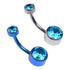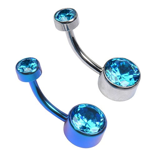 Bezel CZ Titanium Belly Barbell Belly No-Dangles 14g - 7/16" long (11mm) Aqua CZ