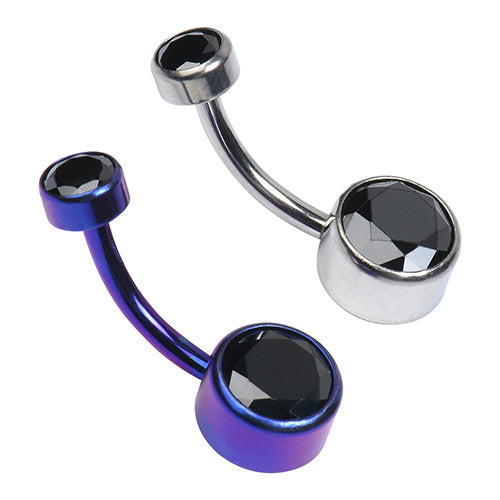 Bezel CZ Titanium Belly Barbell Belly No-Dangles 14g - 7/16" long (11mm) Black CZ
